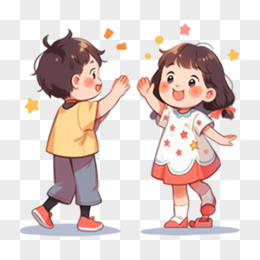 卡通手绘两个男生共同得奖冠军庆贺元素