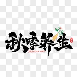 秋季养生黑色毛笔字