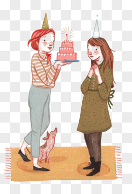 手绘插画风生日蛋糕免抠元素