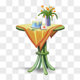 手绘插画风桌子蛋糕鲜花免抠元素
