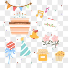 手绘插画风生日蛋糕手账装饰元素