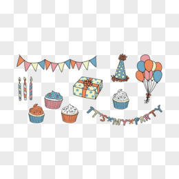 插画生日派对小装饰小蛋糕摆件免抠元素