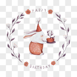 一组手绘卡通动物庆祝生日派对之兔子拿彩旗素材