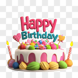 3D插画生日快乐艺术字和生日蛋糕免抠元素