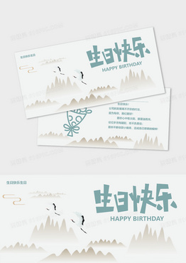 简约水墨渐变简洁生日快乐生日贺卡证书模板