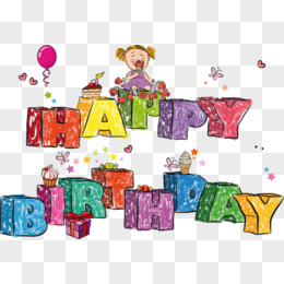 插画风格生日艺术字生日快乐免抠元素