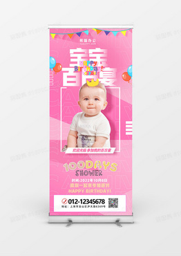 温馨粉色宝宝生日百日宴展架