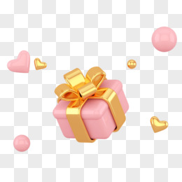 金粉色C4D立体创意礼包爱心装饰元素