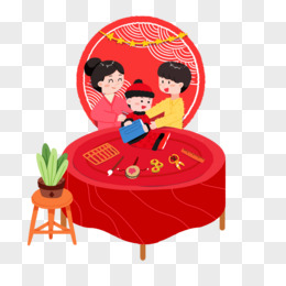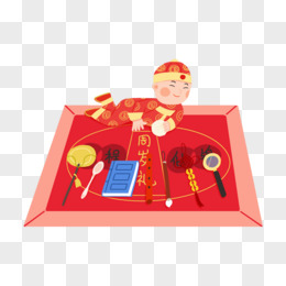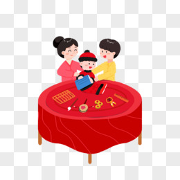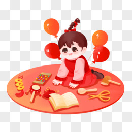 手绘习俗周岁礼抓周场景元素