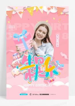 唯美小清新企业员工生日快乐生日趴宣传海报