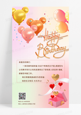 通用渐变员工生日派对主题海报业主生日会手机宣传海报