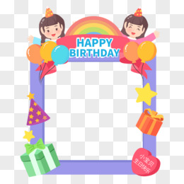 卡通生日快乐拍照框边框免抠元素