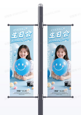 蓝色渐变小清新风生日会明星粉丝应援手幅粉丝应援道旗