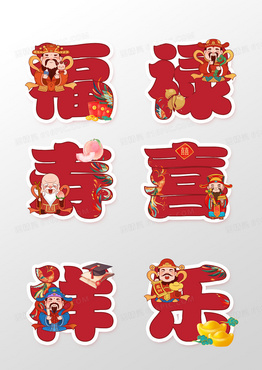 文字造型福禄寿喜祥乐生日祝福手举牌设计