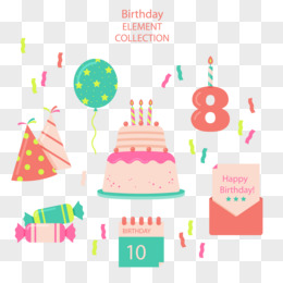 生日元素 矢量图 扁平化 彩带 气球 生日蛋糕