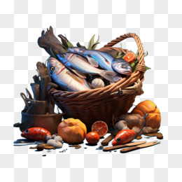 3D卡通一筐海鲜元素