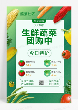 绿色简约生鲜蔬菜团购活动海报