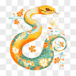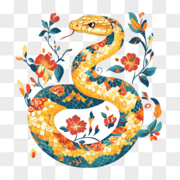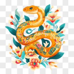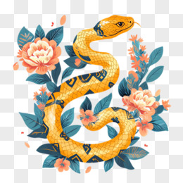 插画风花朵蛇免抠素材