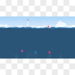 深海灯塔卡通插画