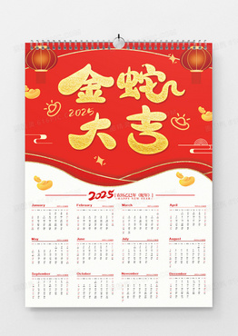 中国风2025蛇年成语日历宣传海报