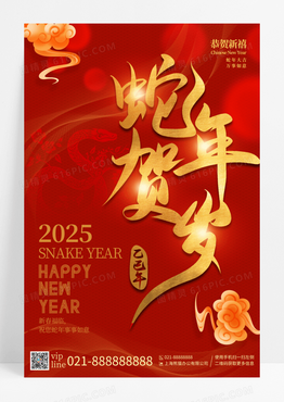 红色烫金大气2025年蛇年蛇年贺岁新年宣传海报