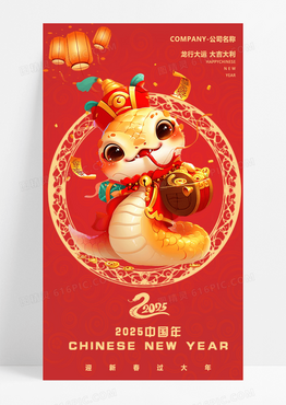 红色国风氛围自媒体2025蛇年大吉中国年手机海报设计