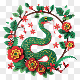 一组金箔剪纸风十二生肖套图之蛇免抠素材