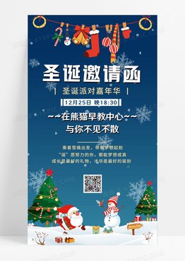 深蓝背景简约圣诞邀请函圣诞节邀请函