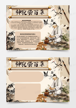 神农尝百草水墨风格医学手抄报