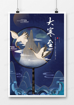 深蓝国潮中国风大寒节气海报