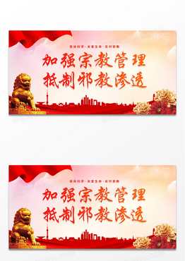 红色党建大气时尚加强宗教管理抵制邪教渗透反邪教展板