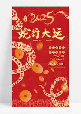 红色蛇年2025年新年蛇身红色蛇行大运蛇年海报