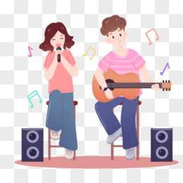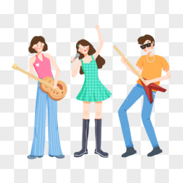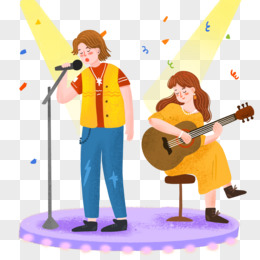 手绘男女乐队唱歌表演免抠元素