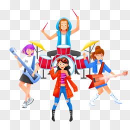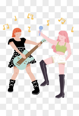 卡通女生乐队唱歌插画人物素材