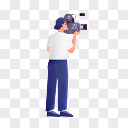 卡通手绘免抠摄像师手持录像机素材
