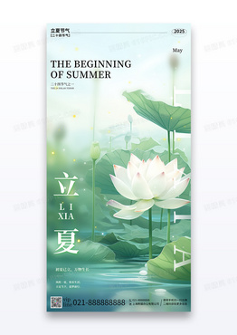 绿色简约插画立夏二十四节气宣传海报