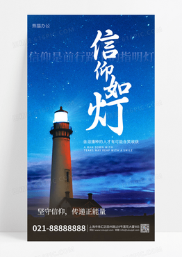 蓝色意境信仰如灯企业文化励志UI手机海报信仰如灯企业文化励志摄影图海报
