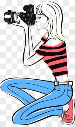 插画风传媒工作者蹲着工作的摄影师免抠元素