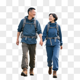摄影一对夫妻背着登山包登山免抠元素