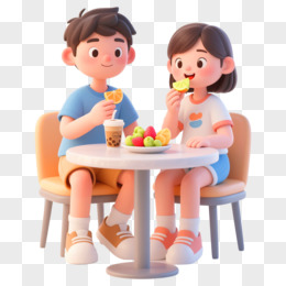 3D建模风格情侣吃水果免抠元素