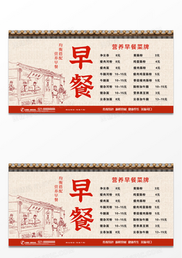 米色简约风营养早餐新鲜食材营养健康展板早餐价格表
