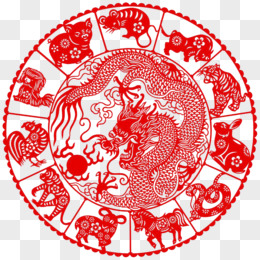 红色十二生肖剪纸龙手绘设计