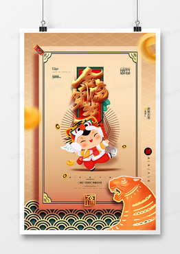 中国风金虎贺岁2022虎年国潮金色海报设计