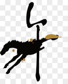 十二生肖马橙色泼墨剪影装饰素材