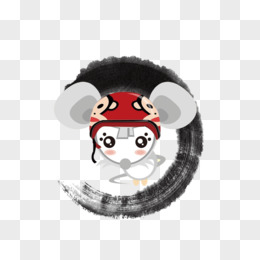 一组卡通水墨风十二生肖合集系列二之鼠免抠素材