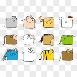 手绘卡通拟人十二生肖合集鼠牛虎兔龙蛇元素