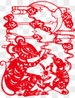 一组简约风矢量十二生肖剪纸合集之老鼠免抠素材