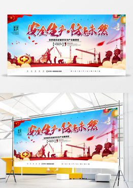 简约通用安全生产警钟长鸣工地城市公益展板设计