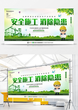 小清新简约安全施工展板设计
