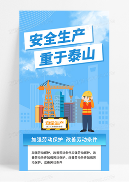 蓝色插画风安全生产重于泰山安全施工消除隐患手机长图安全生产